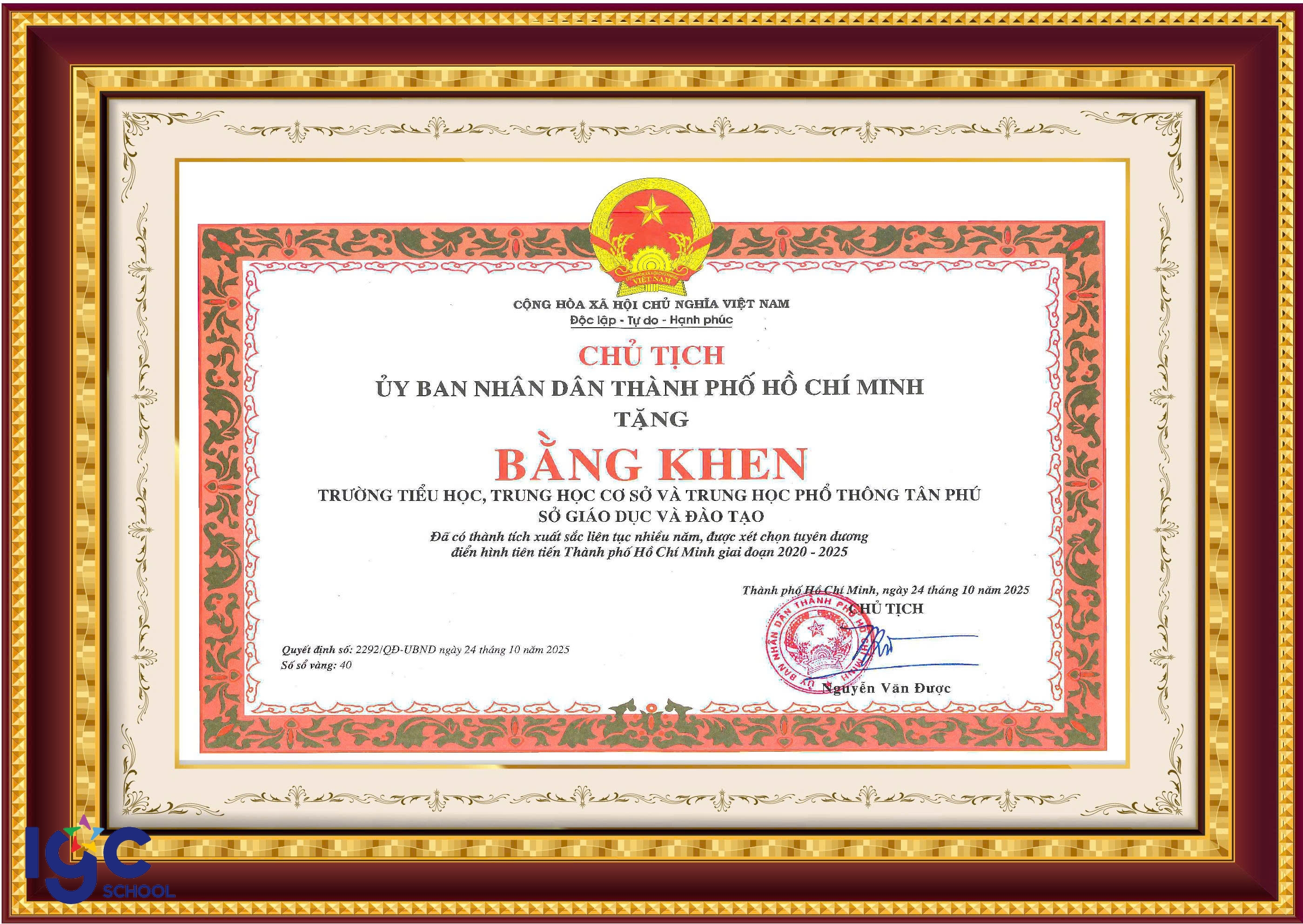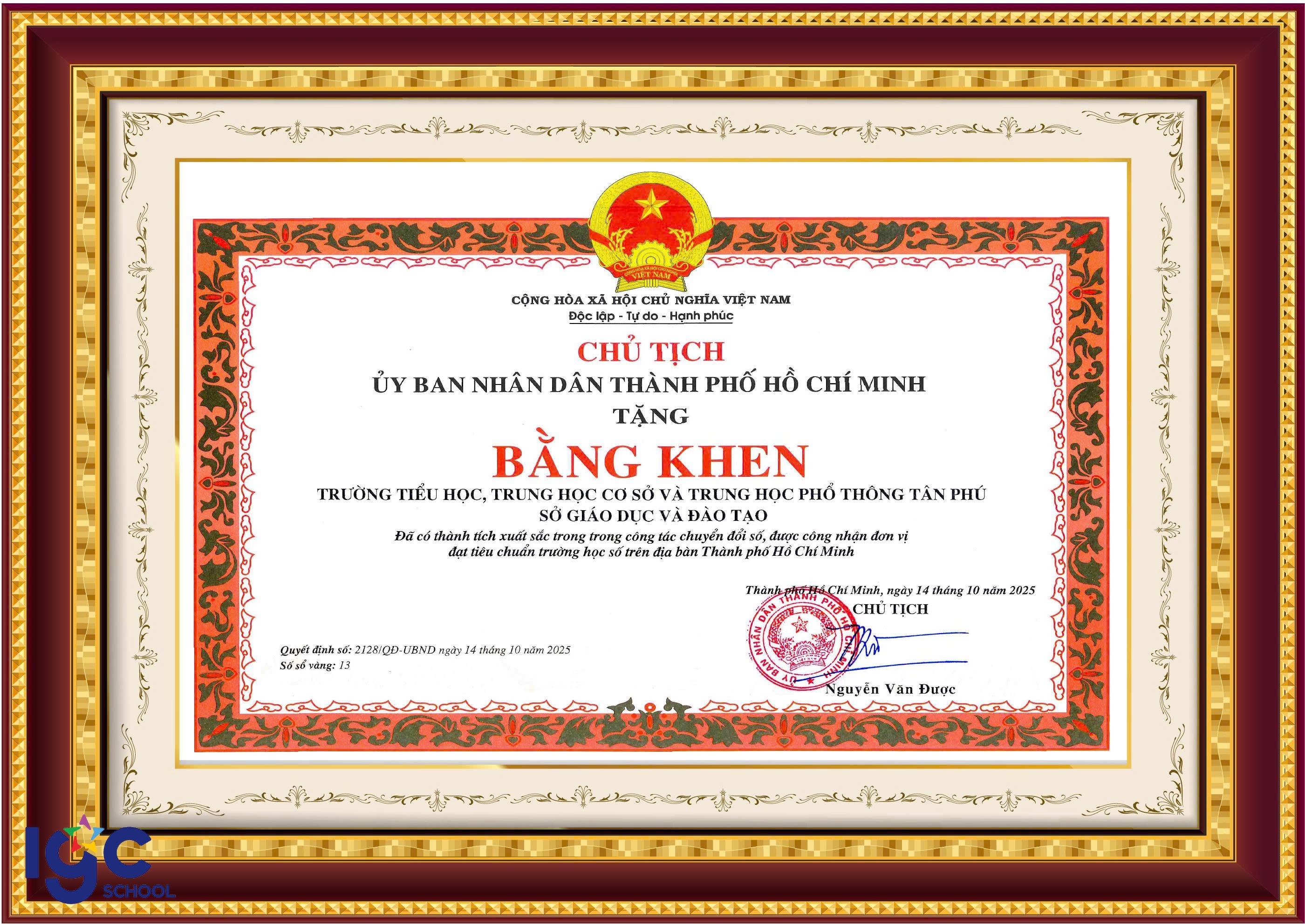 - Bằng khen UBND Thành phố về thành tích chuyển đổi số, được công nhận đơn vị đạt tiêu chuẩn trường học số đầu tiên trên địa bàn TP.HCM.