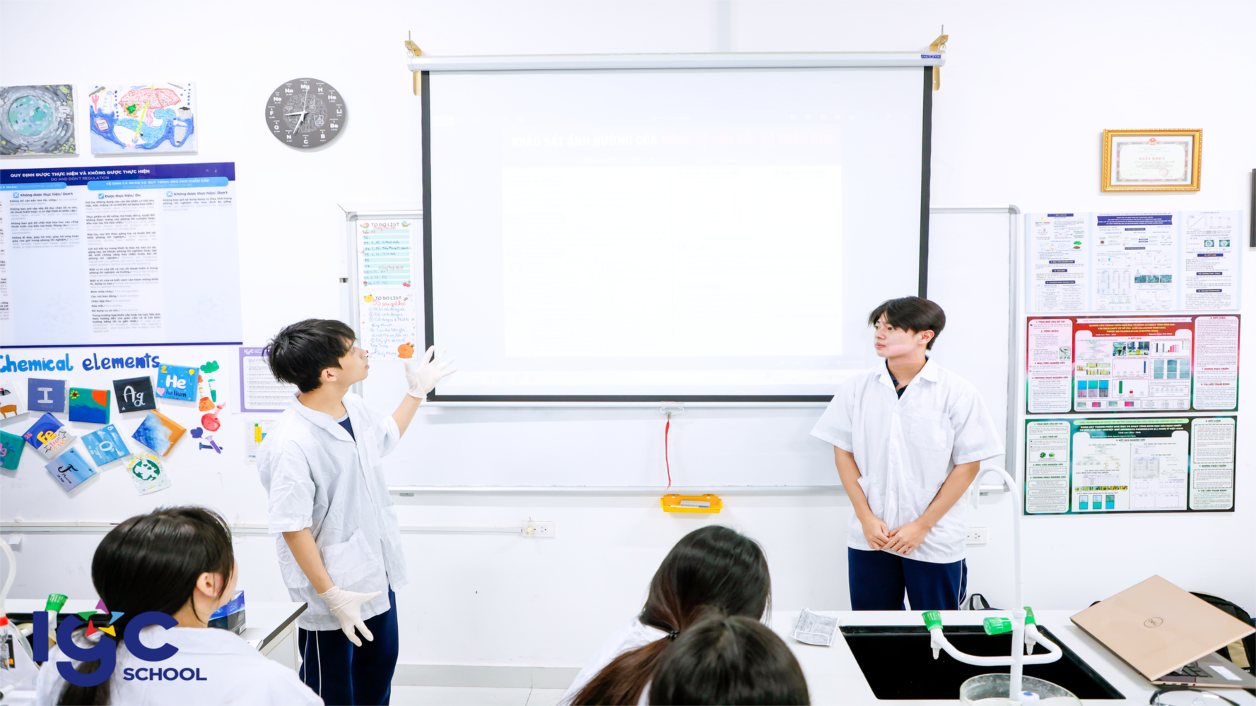 Tham gia tiết học chủ đề “Tốc độ phản ứng hóa học”, các em học sinh lớp 10 trường Tân Phú được trao quyền chủ động đặt vấn đề và các phương án giải quyết, đề xuất thí nghiệm cần thực hiện. Các em được thử sức thiết kế thí nghiệm ảo bằng AI và GenAI để đưa ra phán đoán và xây dựng giả thuyết. Từ đó, lập kế hoạch thực hiện thí nghiệm kiểm chứng trực tiếp tại phòng thực hành, rút ra kết luận và trình bày báo cáo trước lớp về sự ảnh hưởng của các yếu tố đến tốc độ phản ứng hóa học. Thông qua chủ đề này, học sinh được phát triển, nâng cao năng lực tìm hiểu thế giới tự nhiên dưới góc độ hóa học và năng lực số.