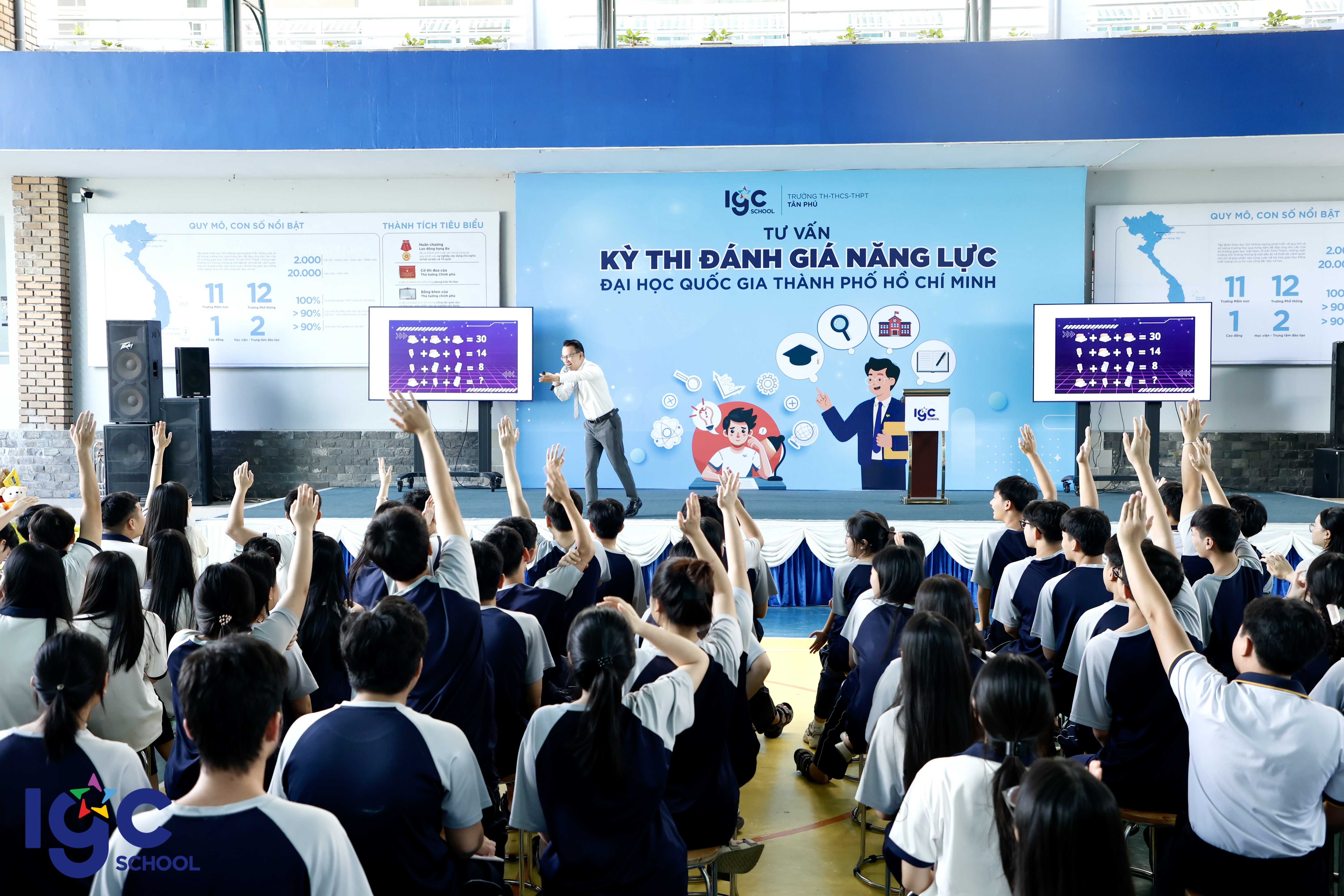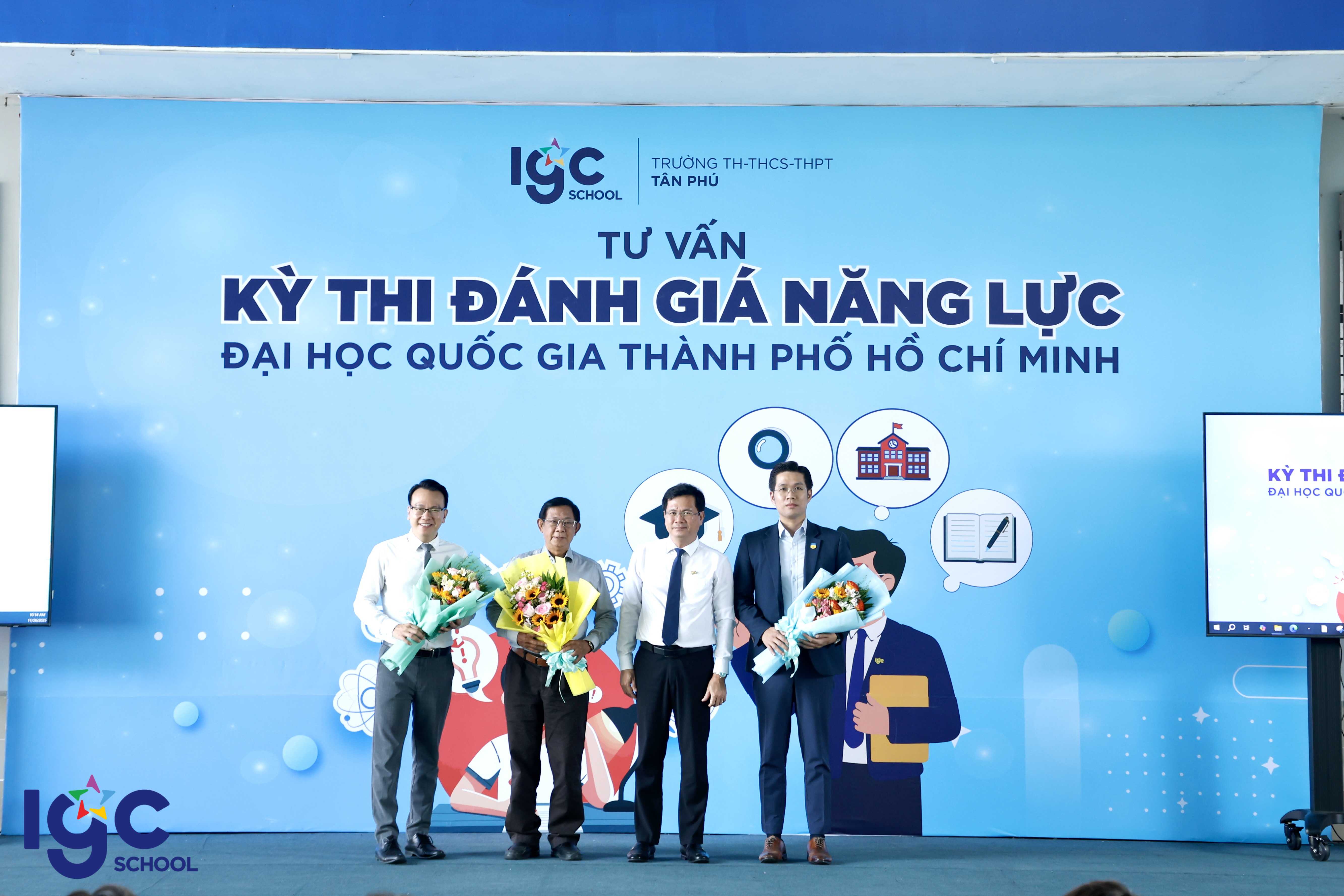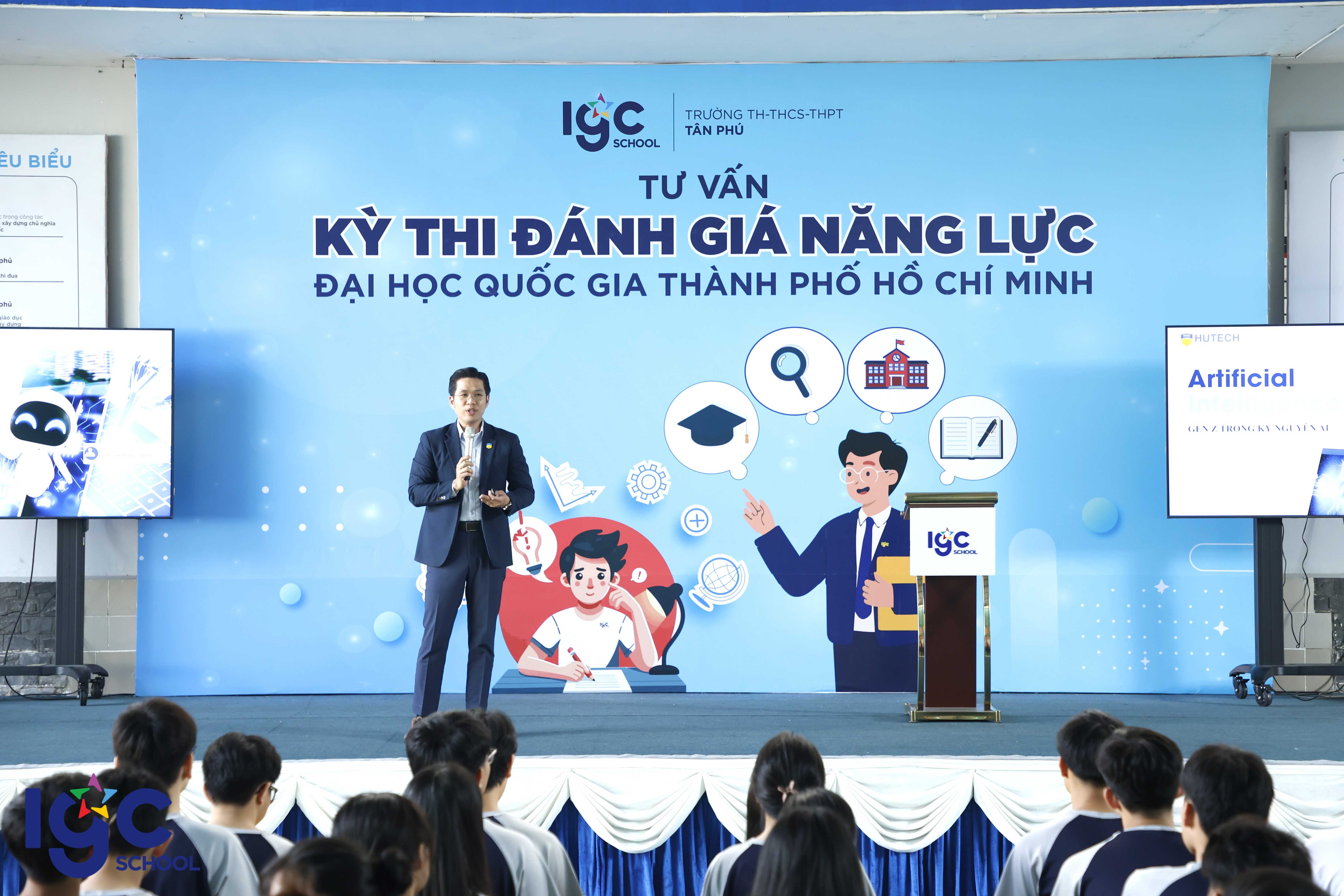 Vừa qua, ngày 26/11/2025, tại sân đa năng Trường TH, THCS và THPT Tân Phú, các em học sinh khối 11 và 12 có nhu cầu thi ĐGNL ĐHQG TPHCM đã có những giờ phút đầy ý nghĩa khi tham dự buổi tư vấn định hướng về kỳ thi đánh giá năng lực ĐHQG TPHCM, trang bị kĩ năng trong kỉ nguyên AI, giải pháp nuôi dưỡng mục tiêu phấn đấu. Không chỉ dừng lại ở việc chia sẻ thông tin, đây còn là dịp học sinh Tân Phú được kết nối sâu sắc cùng những chuyên gia giáo dục hàng đầu: